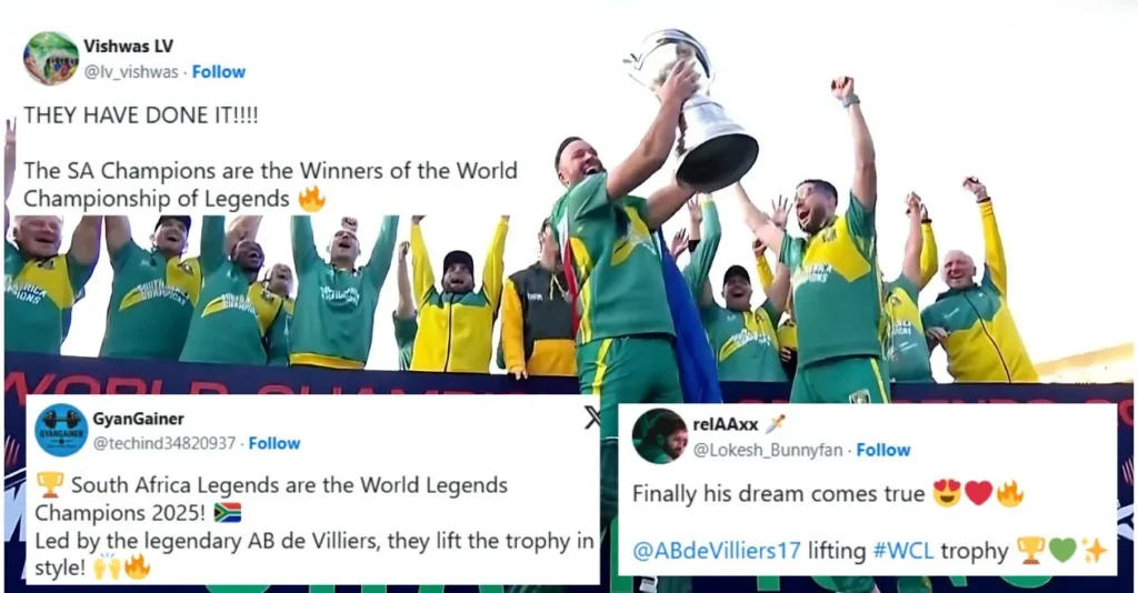 AB de Villiers Left a storm that left Pakistan champion Shocking and finding answers in the last performance World Championship of Legends (WCL) 2025. Displaying Vintage Flair and Fearless Strokeplays, South African Legends easily followed, directed their team to win 9-cicat and in fact sealing the title in major fashion.