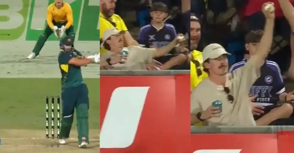 Standout moment came in the 13th over of Australia’s innings when right-arm pacer Corbin Bosch Bowling a short delivery for Tim davidAustralian Power-Hitter pulled the ball with Ferro, causing him to climb. What happened next, all were released – an audience, holding two coaches of beer, reached out with one hand and easily thrown the ball out of the air. Commentator Mark Howard Could not hide his amazement, while the fellow fans burst into cheers on incredible grabbing.